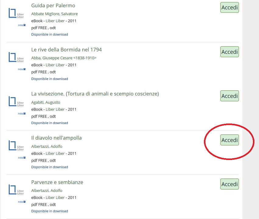 Con lo stesso procedimento visto sopra, cliccando su ACCEDI il lettore riceverà un link alla sua posta elettronica, che verrà custodito anche nel suo spazio lettore.
