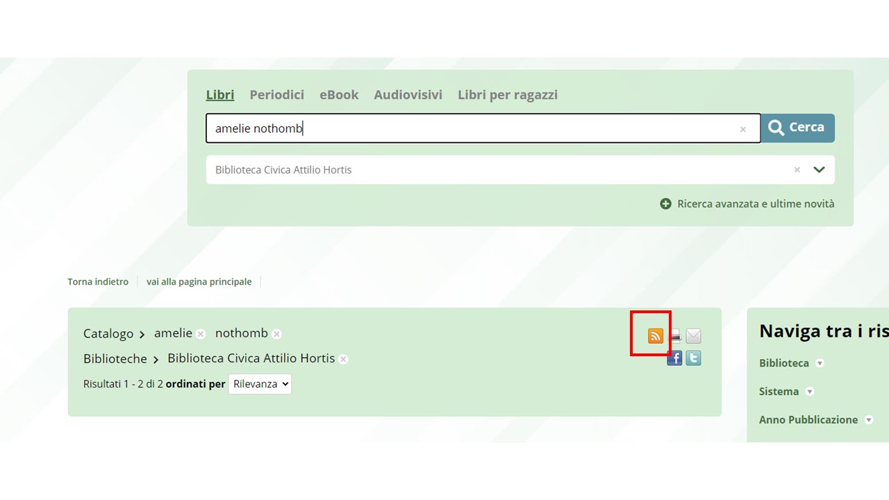 L'elenco dei titoli proposti dal sistema può essere filtrato grazie alle Faccette che si trovano sulla colonna a destra dei risultati.