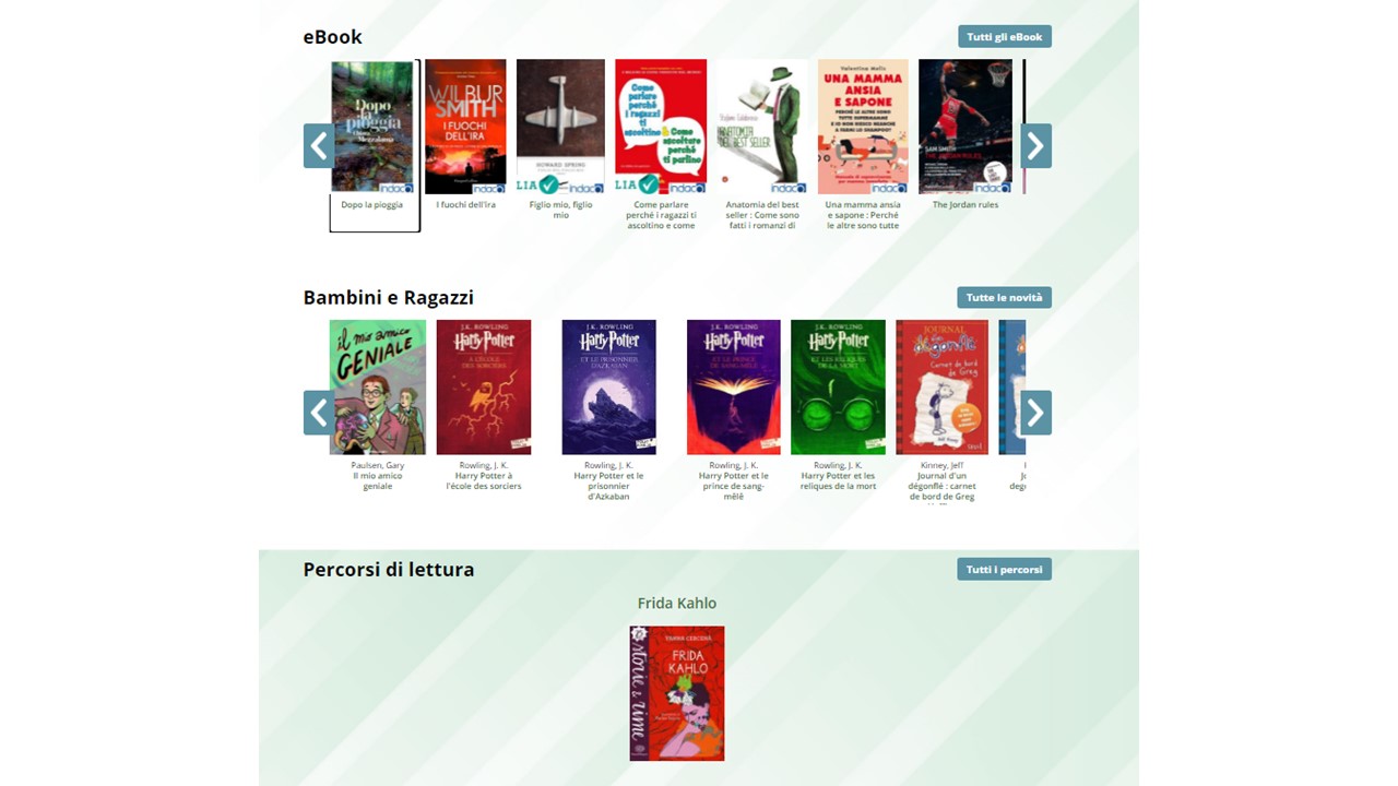 ReteINDACO è una grande piattaforma digitale integrata al catalogo che permette di consultare e scaricare contenuti digitali (ebook, film, audiolibri...)